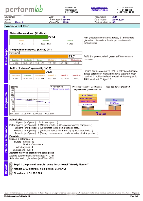Perché: conoscere il proprio dispendio energetico (in kcal) è di fondamentale importanza per una corretta pianificazione alimentare. Grazie ai dati ottenuti con questo test si raggiungeranno i risultati desiderati più rapidamente, evitando al contempo eventuali stati di sotto- o sovranutrizione